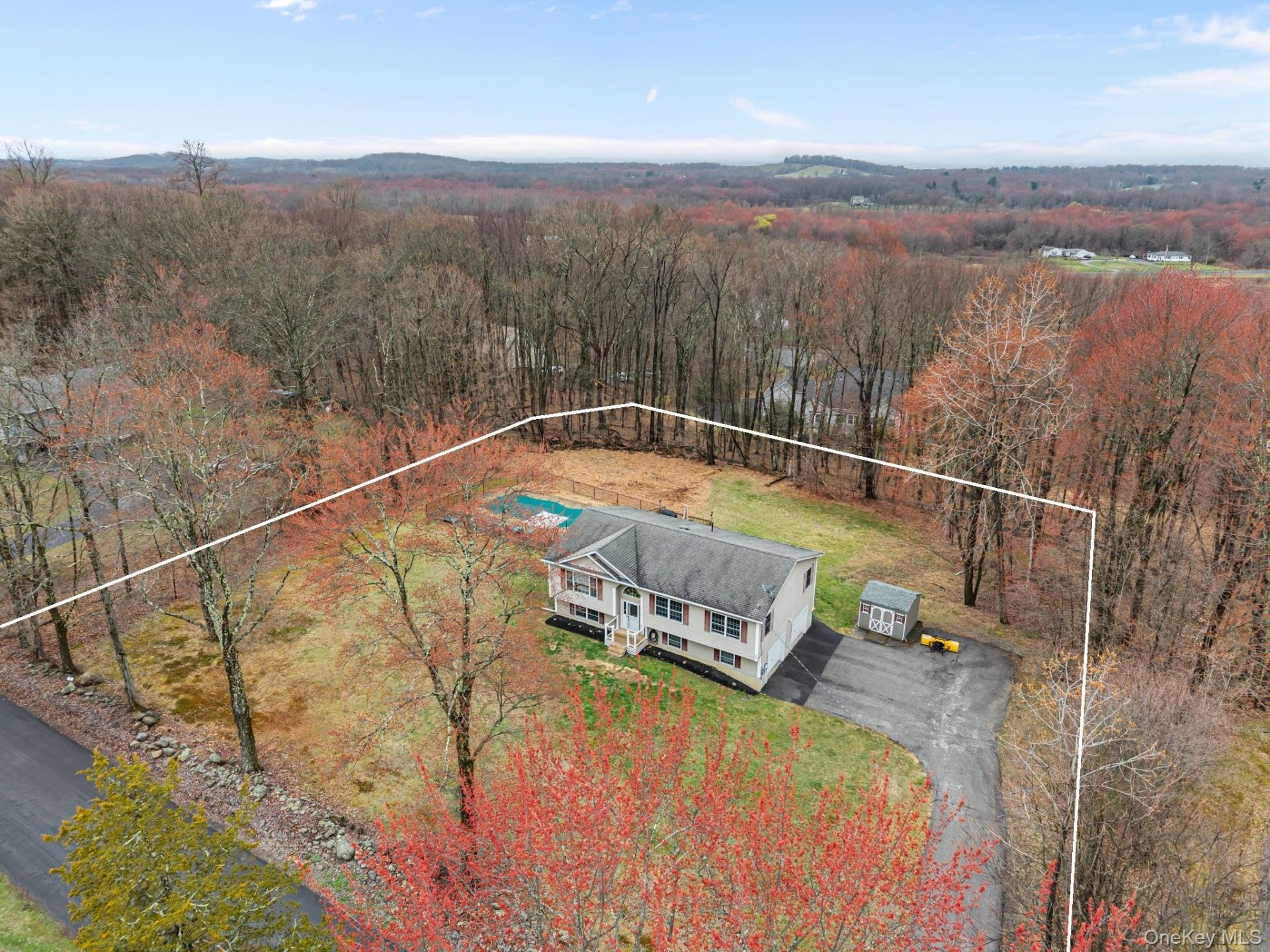 WALLKILL SCHOOLS - HEATED SALTWATER INGROUND POOL - Welcome to 69 Ridge Road, a spacious home offering 2,236 sq. ft. of living space, perfectly set on 1.1 private acres at the end of a quiet cul-de-sac. This home features 3 bedrooms, 2.5 bathrooms, and a heated in-ground saltwater fiberglass pool-ideal for summer entertainment! The main level showcases an open-concept layout with cathedral ceilings, seamlessly connecting the living room, dining area, and kitchen. Glass doors with integrated blinds lead to the rear deck, creating a bright and airy space perfect for entertaining. The kitchen is equipped with an island with bar seating, ample cabinetry, and a pantry for added storage. The spacious primary suite includes a private full bath with a jacuzzi tub, two closets with custom built-ins, and is large enough for a king-sized bed. Two additional bedrooms and a full hall bath complete the main floor. The lower level offers flexible living space, including a family room, den or home office, half bath, and a dedicated laundry room with a slop sink and newer washer and dryer. Notable upgrades include central air (recently replaced), generator hookup, underground electric dog fence, security system for windows and doors, and gutter guards. The septic has been recently pumped, and the boiler has been regularly serviced. Conveniently located just minutes from Gardiner and New Paltz, with easy access to local farm markets, wineries, distilleries, Minnewaska State Park, Mohonk Mountain House, and the Shawangunk Ridge. Commuter-friendly location-approximately 90 minutes to NYC and close to major highways, Stewart International Airport, and Metro-North train station. Don't miss a wonderful opportunity to own a home in the fantastic Hudson Valley!